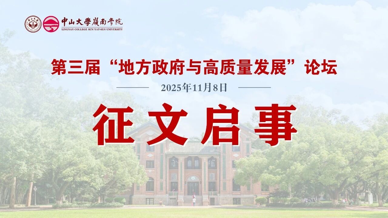 为深入学习贯彻习近平总书记重要讲话、重要指示和党的二十大精神,助推广东在中国式现代化建设中走在前列,由中山大学岭南学院、中山大学中观经济学与区域产业协同发展重点实验室、中观经济学虚拟教研室联合主办的“2025年第三届‘地方政府与高质量发展’论坛”,将于2025年11月8日在中山大学广州校区南校园召开,现面向国内外高校学者公开征集优秀论文。